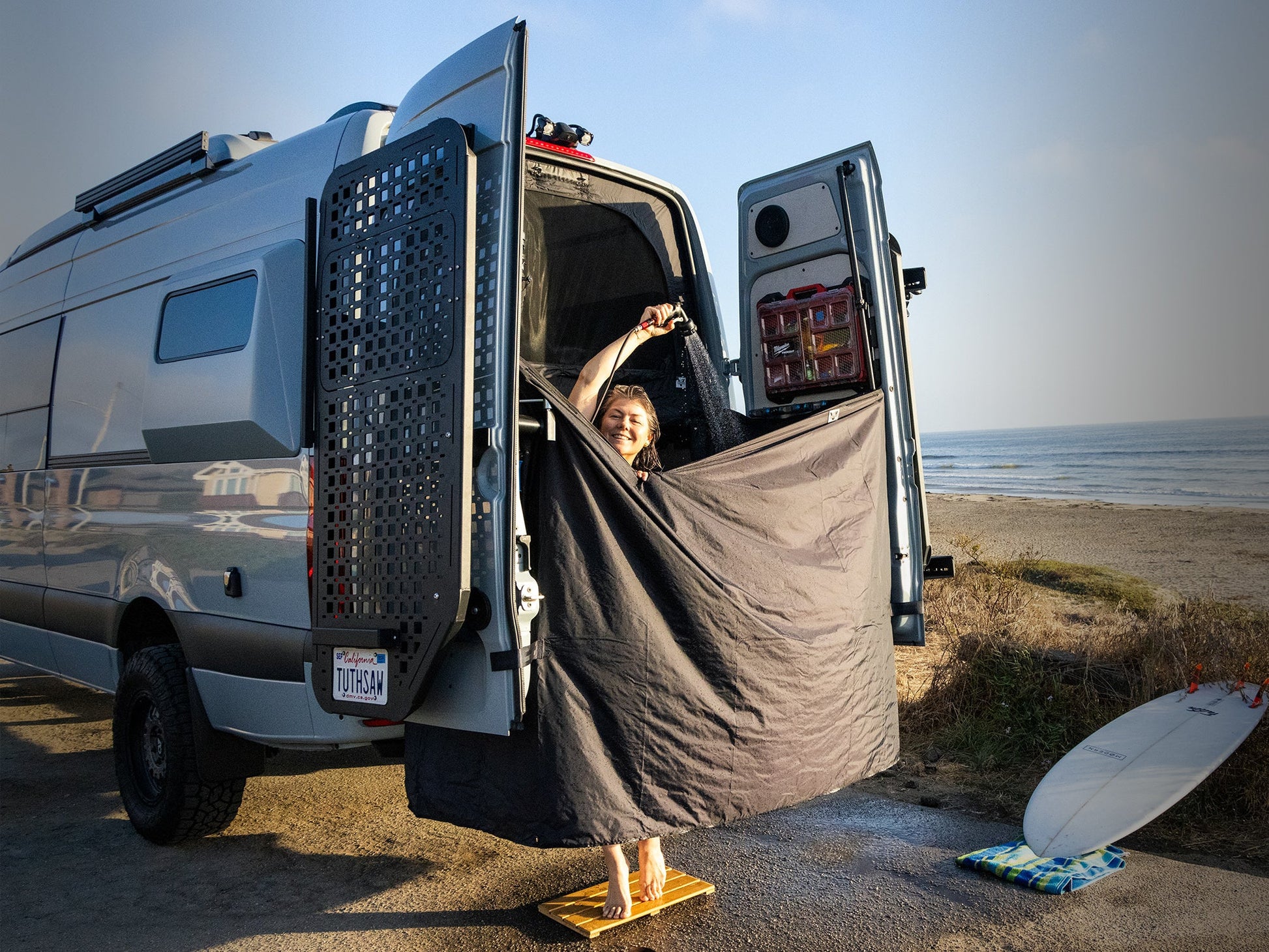Designed for vanlifers and overland explorers who value both privacy and practicality, the VANNON Shower Curtain is built to integrate seamlessly with your Sprinter van interior. Whether you're adding a shower setup to your custom build or upgrading your existing system, this curtain is built to perform on the road.